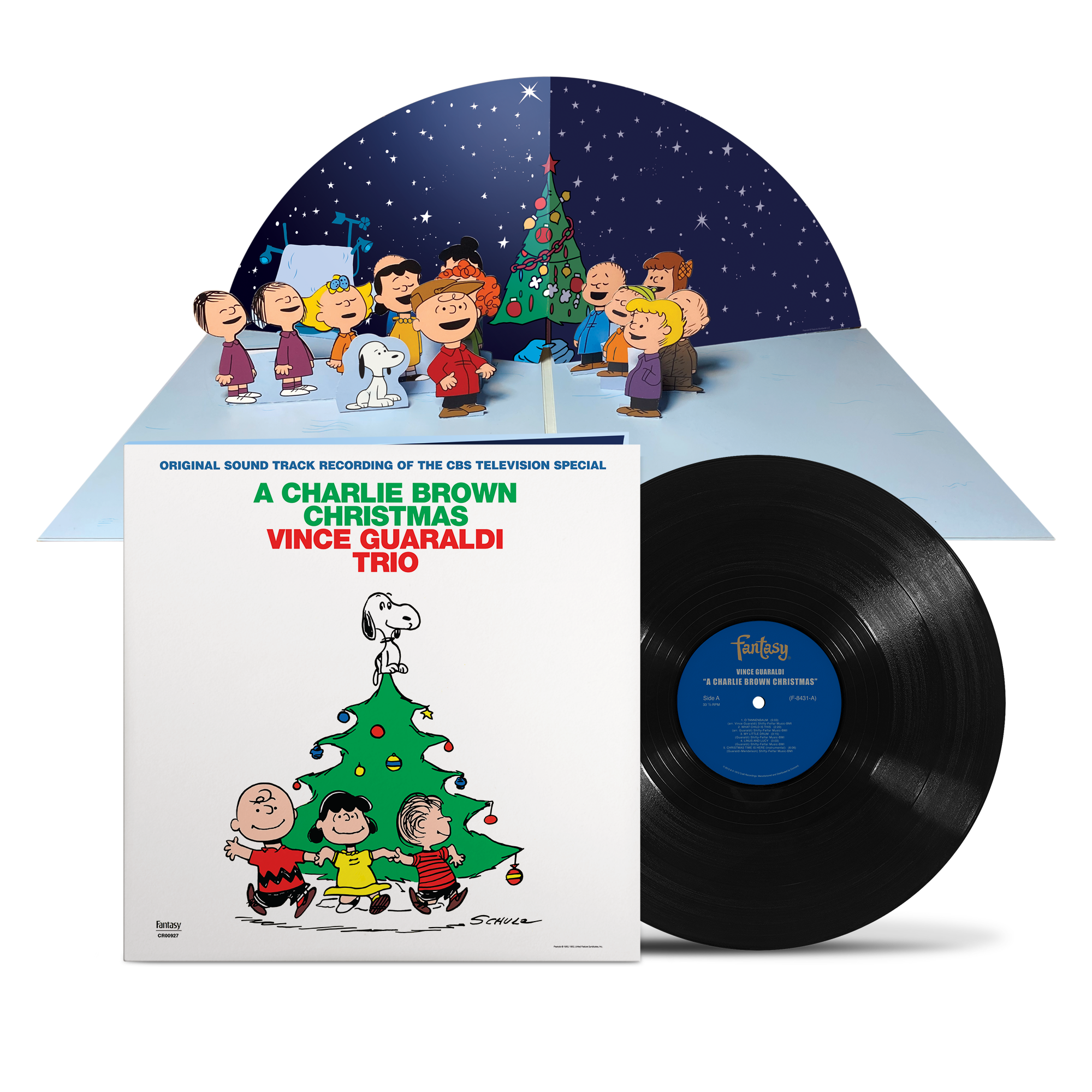 This collector's edition of Vince Guaraldi Trio's A Charlie Brown Christmas is housed in a special pop-up gatefold sleeve and is released to celebrate the 75th anniversary of PEANUTS and the 60th anniversary of the iconic album and TV special. Still one of the most beloved holiday albums of all-time, this 5x RIAA platinum selling perennial classic continues to introduce generations of children and adults to the joys of jazz, with songs like "Christmas Time is Here" and "Linus and Lucy." This edition of the album comes in a special gatefold sleeve featuring a pop-up scene of Charlie Brown, Snoopy and the gang singing around a Christmas Tree, from the PEANUTS holiday special.